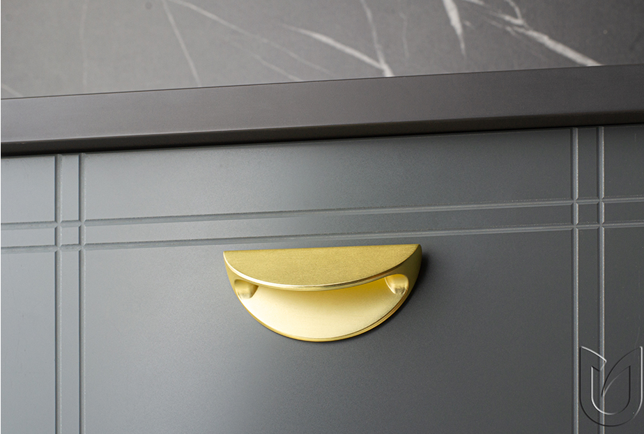 Pohištveni ročaj BELLA združuje presenetljive lastnosti kot so školjkasta oblika in matirana zlata barva. Morda je pri odločitvi za nakup potrebno nekaj poguma a končni izgled pohištva vas bo nagradil z vtisom ekstravagance in čudovite elegance.