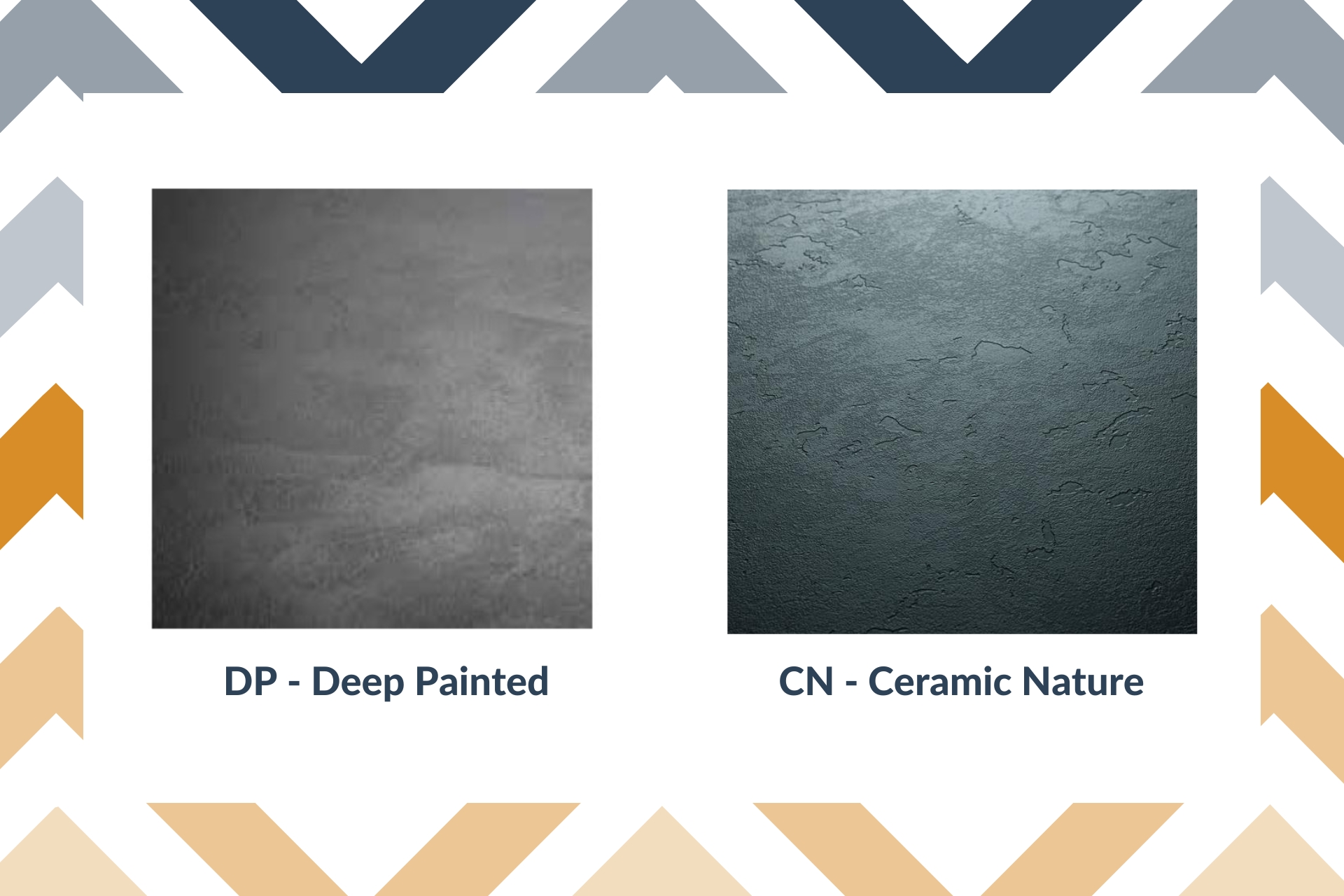 - MN – Matt Nature: najbolj standardna površina barvnih dekorjev (npr. bele, sive, črne, zelene …). Je gladka in matirana.