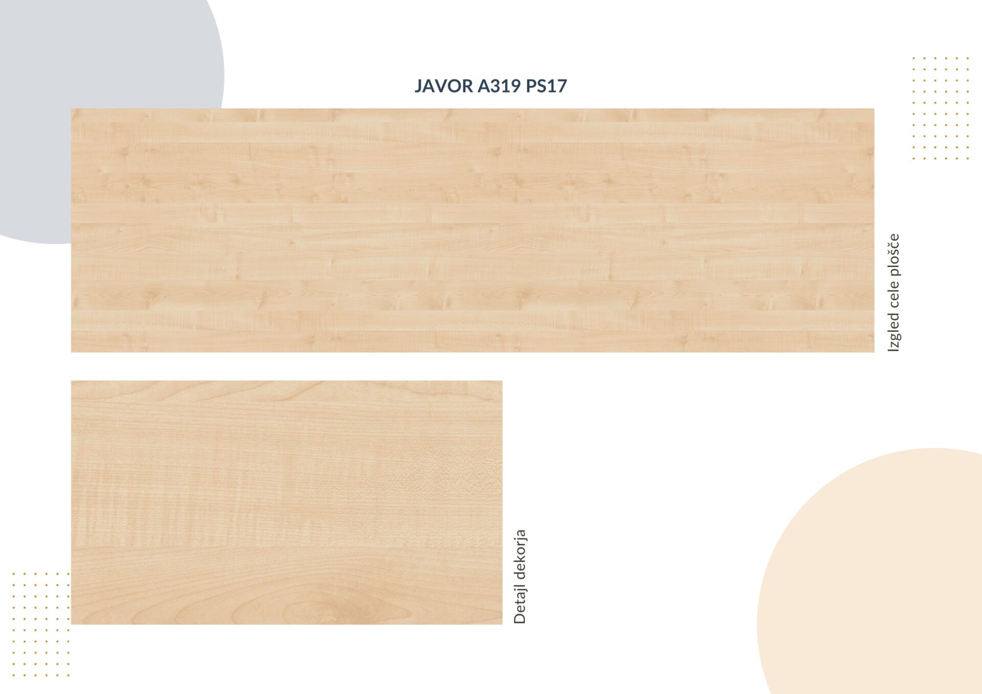 Za večje pisalne mize, ki jih deli več članov družine, ali za konferenčne mize v poslovnem okolju so zelo primerni dekorji v svetlih odtenkih. V naši ponudbi jih imamo kar nekaj, od javorja, klasične bukve do trendovskega hrasta.